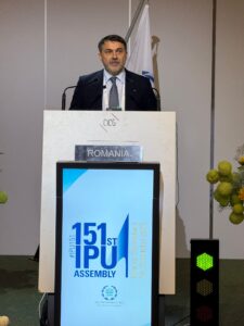 În intervenția sa pe tema bugetului ONU, șeful delegației GRUI s-a arătat optimist privind capacitatea organizației de a continua să fie eficientă chiar și cu un buget redus. În opinia parlamentarului român, acest lucru este posibil dacă organizația pune accent pe adaptare, pe o concentrare mai clară asupra funcțiilor de bază, pe parteneriate mai solide și pe abordări inovatoare de finanțare. Va fi nevoie de curaj politic din partea statelor membre pentru a revitaliza multilateralismul într-o epocă a fragmentării. În acest context, a atras atenția că miza este uriașă: o ONU subfinanțată și slăbită ar lăsa un gol periculos tocmai în momentul în care cooperarea globală este mai necesară ca oricând.