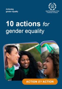 Campania UIP „Realizarea egalității de gen, acțiune cu acțiune” are ca scop mobilizarea comunității parlamentare globale pentru a accelera progresul în realizarea egalității de gen, în viața politică și în societate. Având în vedere stagnarea progresului în ceea ce privește reprezentarea femeilor în parlamente și regresul îngrijorător al respectării drepturilor femeilor în unele țări, campania subliniază urgența luării de măsuri imediate, invitând membrii parlamentului să dea exemplu și să se angajeze în acțiuni transformatoare care să promoveze egalitatea de gen.